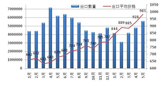 从出口钢材结构看,今年前5个月板管带材出口量同比下降了10.4%,而长材出口数量明显降低,出口数量下降了40.6%。进口的结构变化不大,1-5月全部进口钢材702万吨中,有近90%的比重是板管带材,有8%是长材,这一比例与去年同期基本没有大的变化。 从具体的品种分析,出口量降幅最明显的是窄钢带,冷轧窄带钢和热轧窄带钢出口量分别同比下降了42万吨和54.9万吨,同比降幅分别为86.3%和78.0%,减少的出口量合计96.9万吨占国内产量的5.1%,占全部钢材出口减量的16.8%;钢筋出口也大幅度同比降低了83.0%,出口量同比减少了281.7万吨,这个数字相当于前5个月全国钢筋产量的7.2%;线材出口量同比降低了41.0%,1-5月少出口125万吨,相当国内线材累计产量的3.7%,少出口数量钢材出口减量的21.7%。此外,中小型型钢、冷轧薄板、镀层板、焊管、大型型钢以及厚钢板出口量也有明显的降低。彩涂板出口量明显增长,几乎增长了1倍,1-5月累计出口量达到了75.7万吨;棒材和冷轧薄宽钢带分别增长了44-46%,中板、无缝管、热轧薄板、铁道材均有明显的增长。 3、出口钢材价格经历了一个漫长的上升期,自去年的3月份起至今年的5月份,在连续十五个月的时间里(除了07年的10月份以外),基本上实现了逐月上涨的走势。 ![]() 去年钢材出口价格的连续上升走势,正好与钢材出口规模的变化形成对照。而从今年近4个月以来出口数量的变化趋势看,出口价格和出口量呈现为双双上扬的走势。从价格上涨的实际情况看,显然长材出口价格的上涨更为强劲,5月份棒线材出口平均价格为861美元/吨,比年初上涨了28%,同比上涨了78%;角型材出口平均价格为856美元/吨,比年初上涨了27%,同比上涨了72%;板带材出口平均价格为959美元/吨,比年初上涨了22%,同比上涨了31%;出口平均价格为1163美元/吨,比年初上涨了12%,同比上涨了31%。
